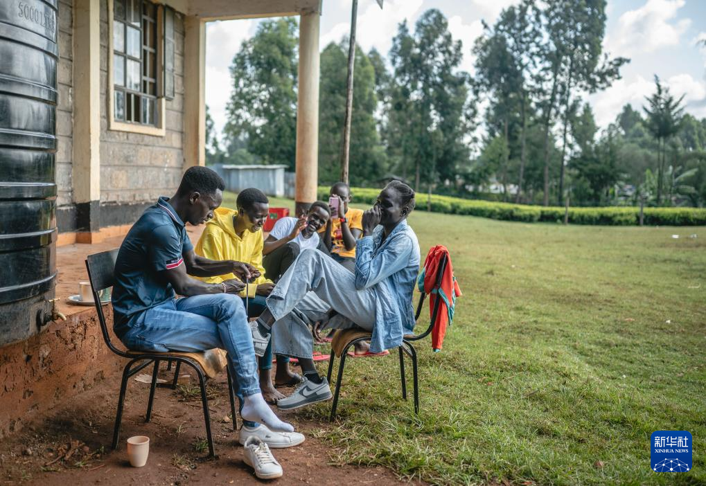 在肯尼亚西部南迪郡,佩里娜(右一)与队友聊天(6月22日摄)。新华社记者 王冠森 摄