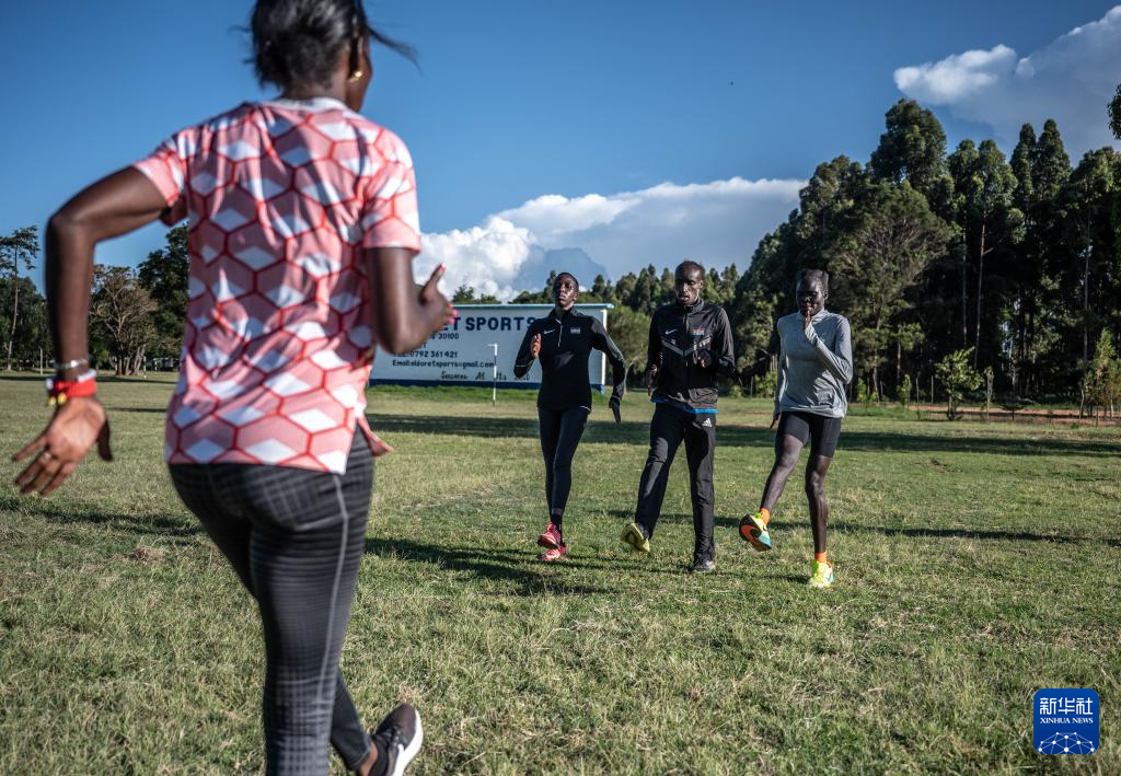 在肯尼亚西部埃尔多雷特,佩里娜(右一)在进行训练(6月21日摄)。新华社记者 王冠森 摄