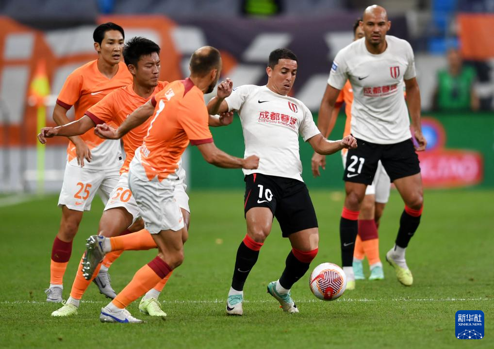 6月26日,成都蓉城队球员罗慕洛(右二)在比赛中拼抢。新华社记者 李紫恒 摄