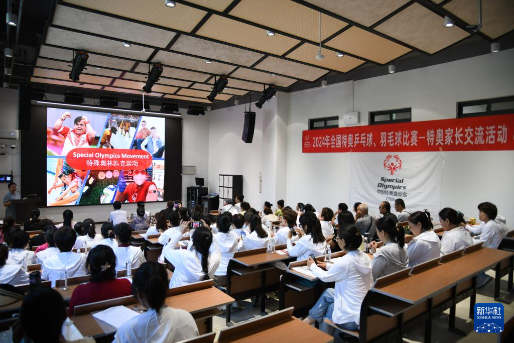 6月27日,特奥运动员家长参与交流活动。新华社记者 张博文 摄