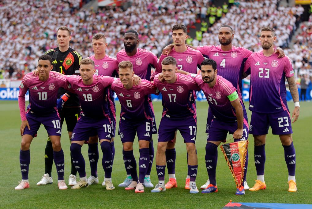 6月23日,欧锦赛A组第三轮比赛前,德国队首发球员合影。新华社记者 白雪飞 摄