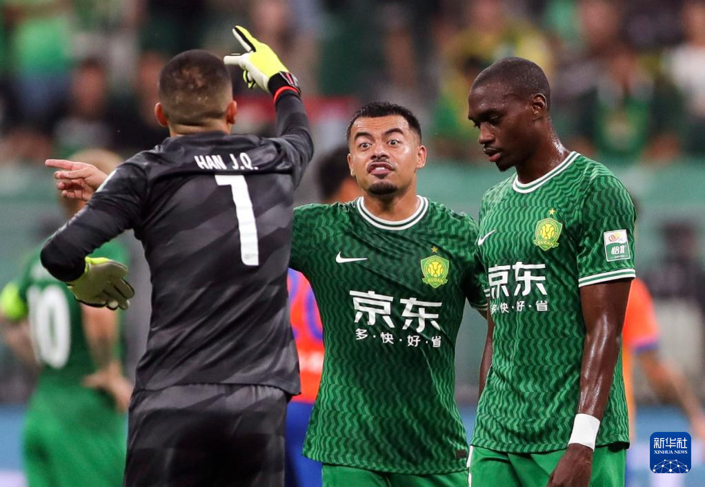 6月30日,北京国安队球员阿德本罗(左二)在比赛中错失机会后。新华社记者 胡星宇 摄