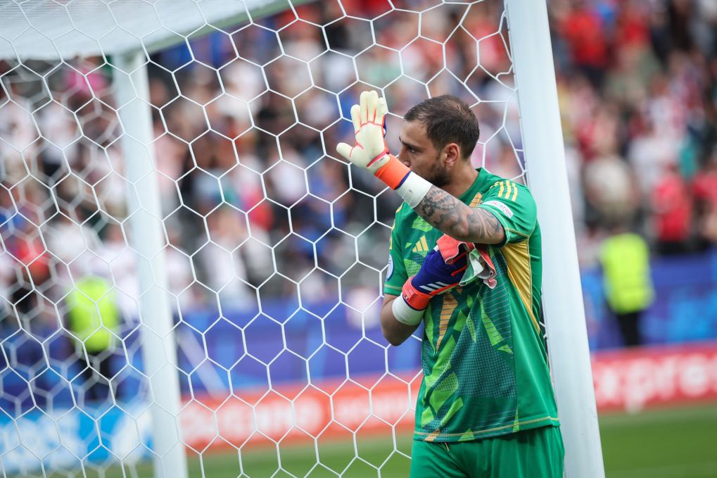 6月29日,意大利队守门员唐纳鲁马赛后向球迷致歉。新华社记者 潘昱龙 摄