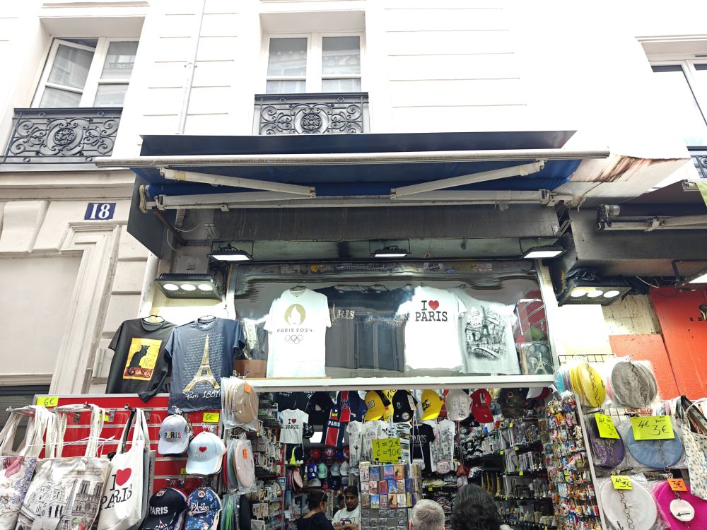 蒙马特一未授权景点纪念品店正售卖巴黎奥运会T恤衫。