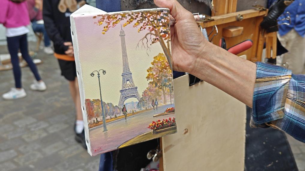 从满是高度同质化景点纪念品的山脚下,一路走到小丘广场,在欣赏过画家们传承上百年的绘画技艺后,人们能够感受到工业制成品与艺术创造的巨大差别。