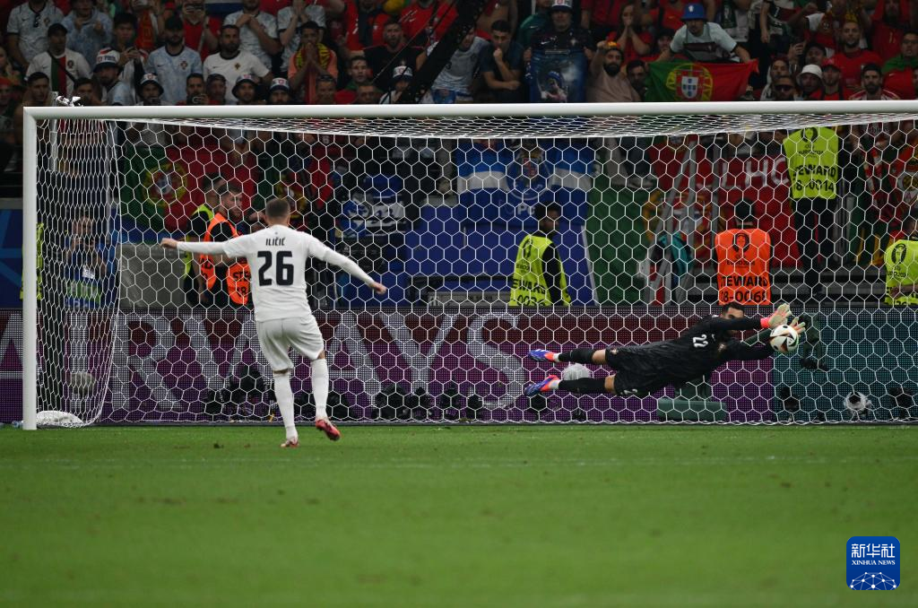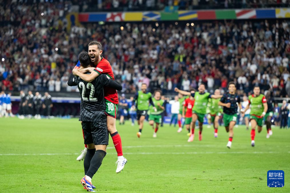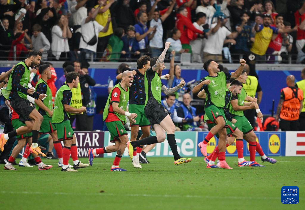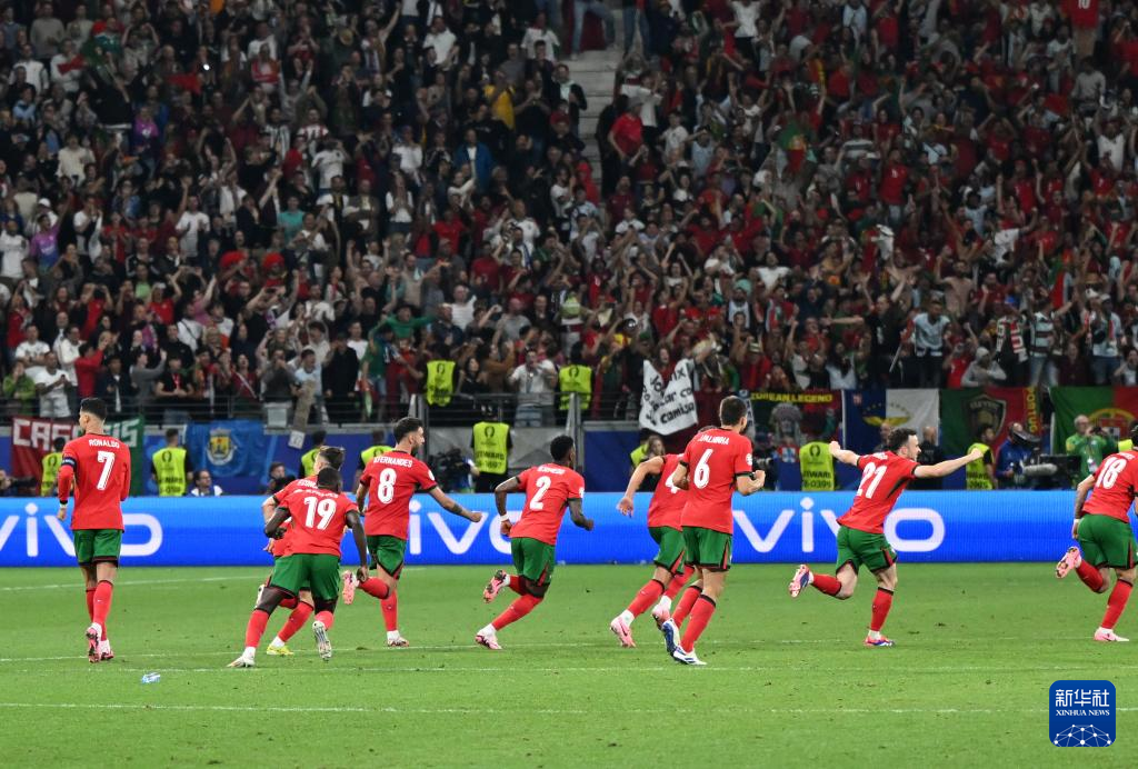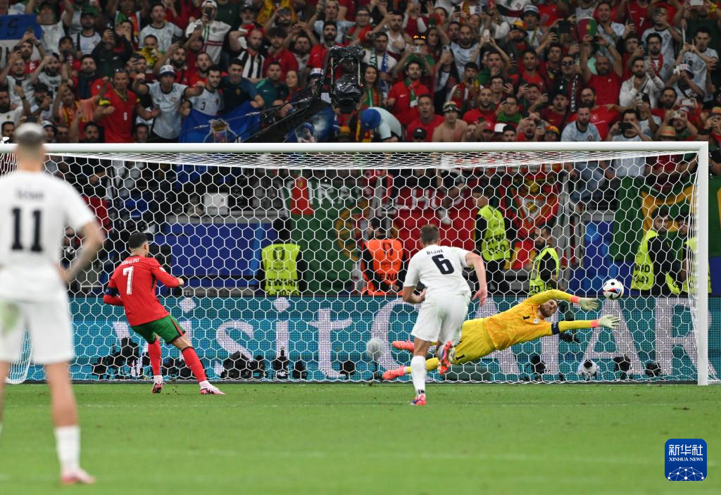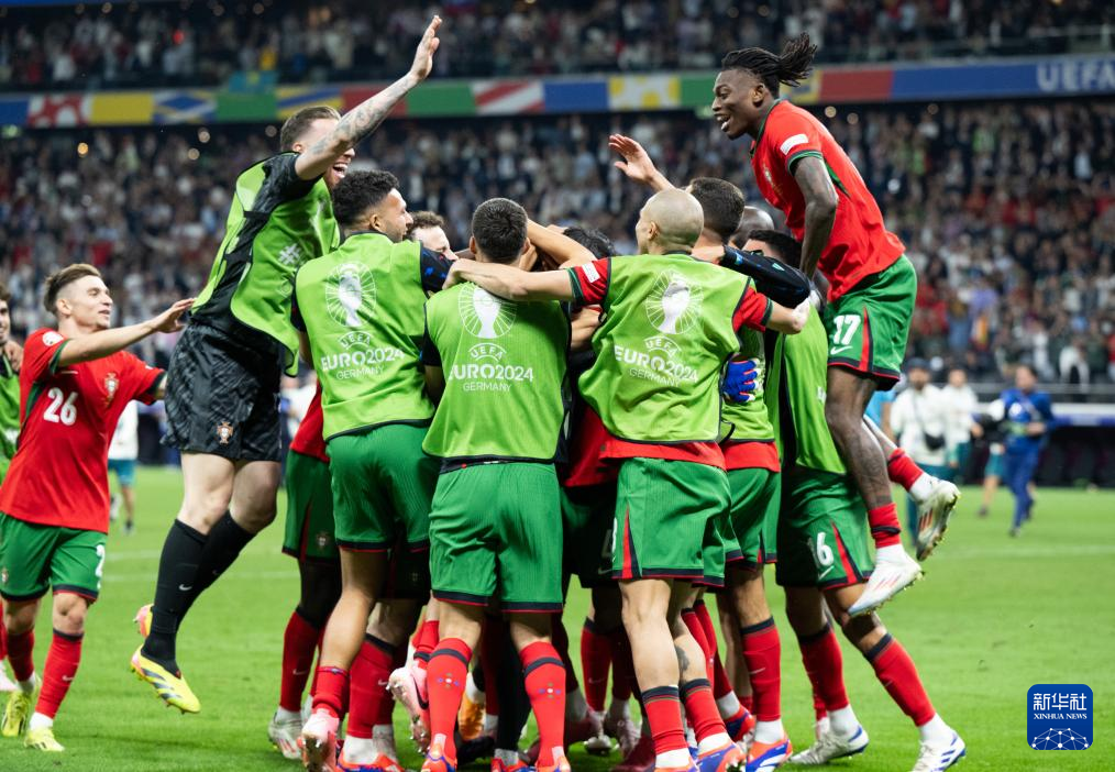 当日,在德国法兰克福进行的2024欧洲足球锦标赛八分之一决赛中,葡萄牙队和斯洛文尼亚队在常规时间和加时赛战成0比0,最终在点球大战中,葡萄牙队3比0战胜斯洛文尼亚队,晋级八强。