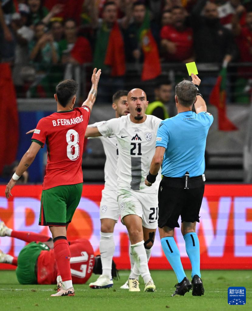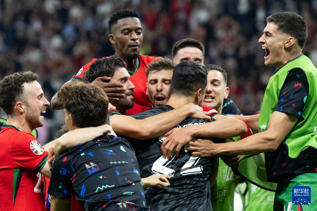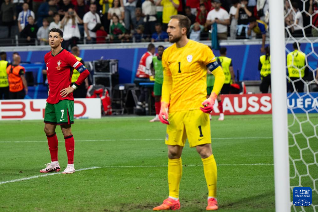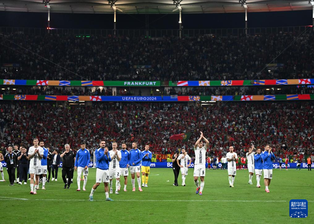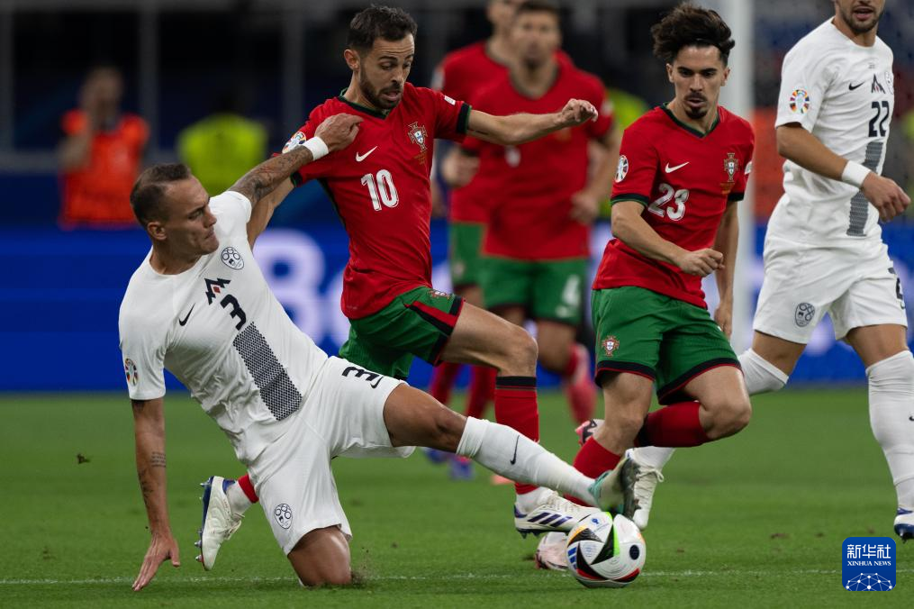 当日,在德国法兰克福进行的2024欧洲足球锦标赛八分之一决赛中,葡萄牙队和斯洛文尼亚队在常规时间和加时赛战成0比0,最终在点球大战中,葡萄牙队3比0战胜斯洛文尼亚队,晋级八强。