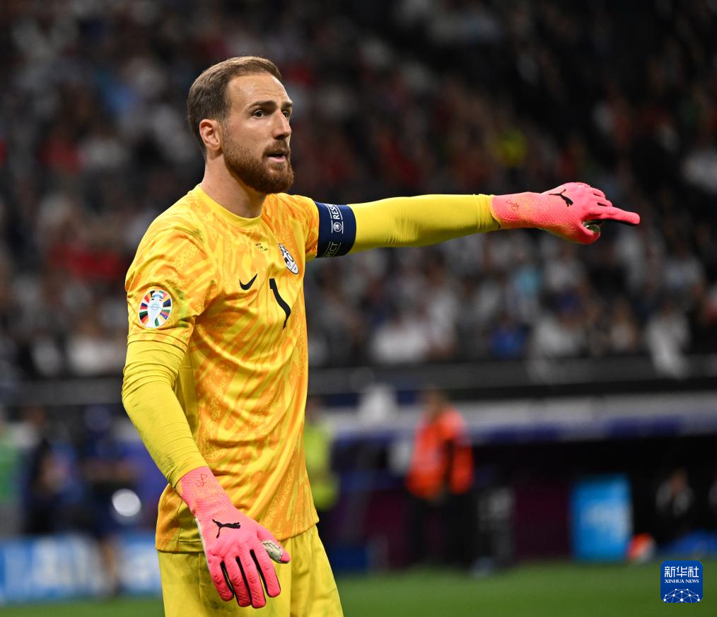 7月1日,斯洛文尼亚队守门员奥布拉克在比赛中。新华社记者 任鹏飞 摄