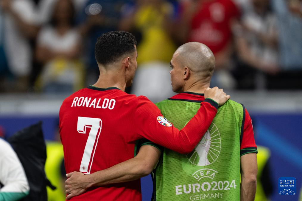 7月1日,葡萄牙队球员克·罗纳尔多(左)与队友佩佩在比赛结束后。新华社记者 肖艺九 摄