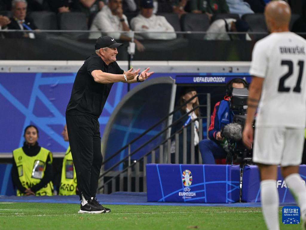 7月1日,斯洛文尼亚队主教练马蒂亚兹·科克在场边指挥。新华社记者 任鹏飞 摄