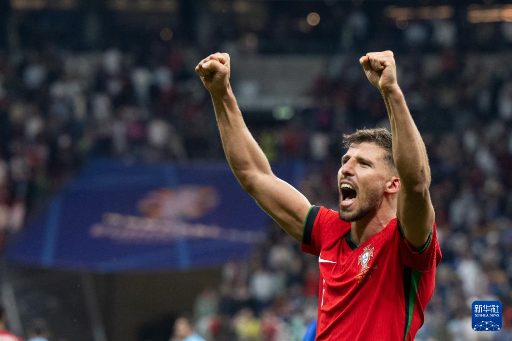 7月1日,葡萄牙队球员鲁本·迪亚斯在赛后庆祝。新华社记者 肖艺九 摄