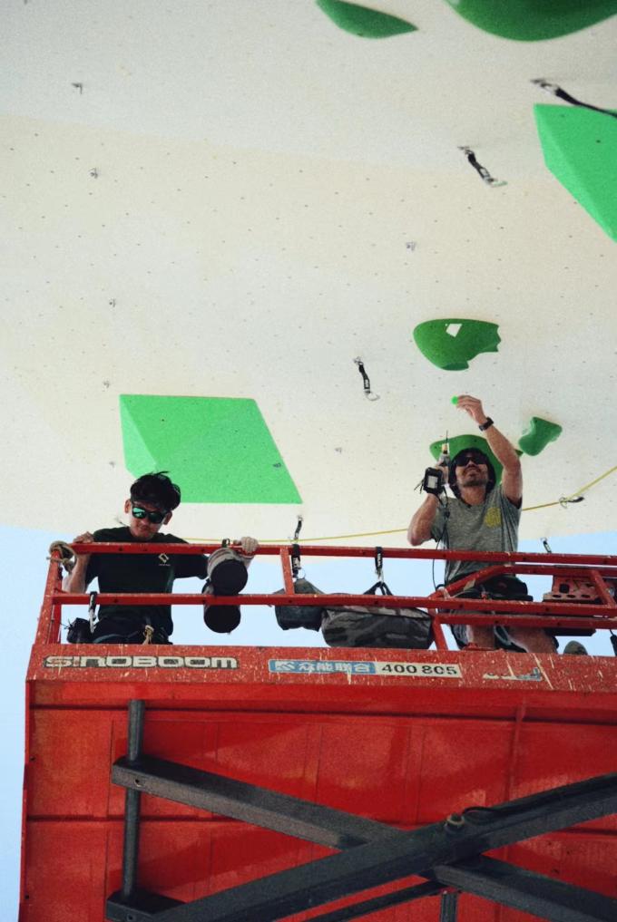 来自日本的定线员在北顶奥森攀岩生态园定线。