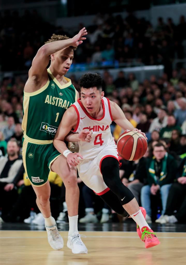 澳大利亚队在第三节下起“三分雨”,又在末节将分差拉到20分以上,最终中国队以87:107告负。