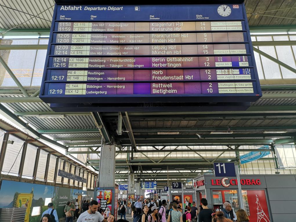 图为斯图加特火车站列车信息电子屏