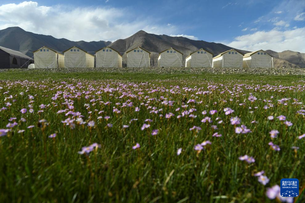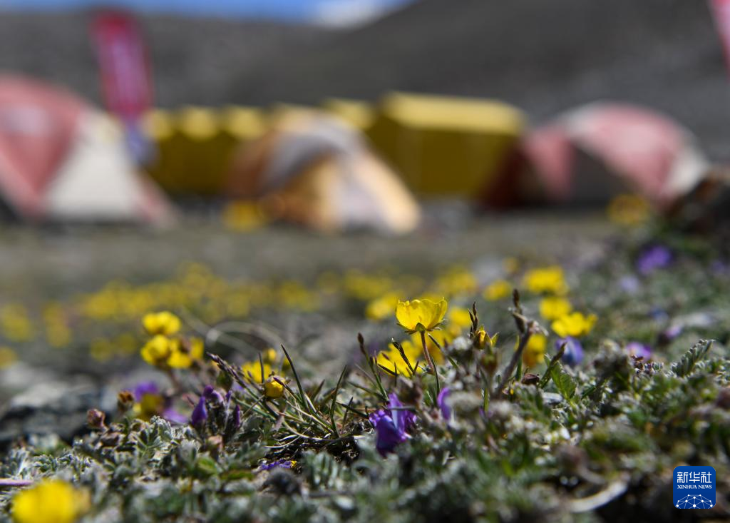 这是在新疆慕士塔格峰山脚下拍摄的一处登山营地帐篷(7月2日摄)。新华社记者 胡虎虎 摄