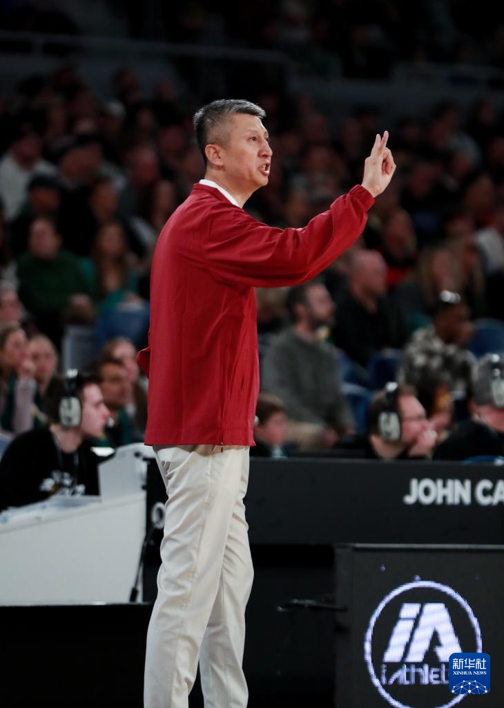 7月4日,中国男篮代理主教练郭士强在场边指挥。新华社记者 马平 摄