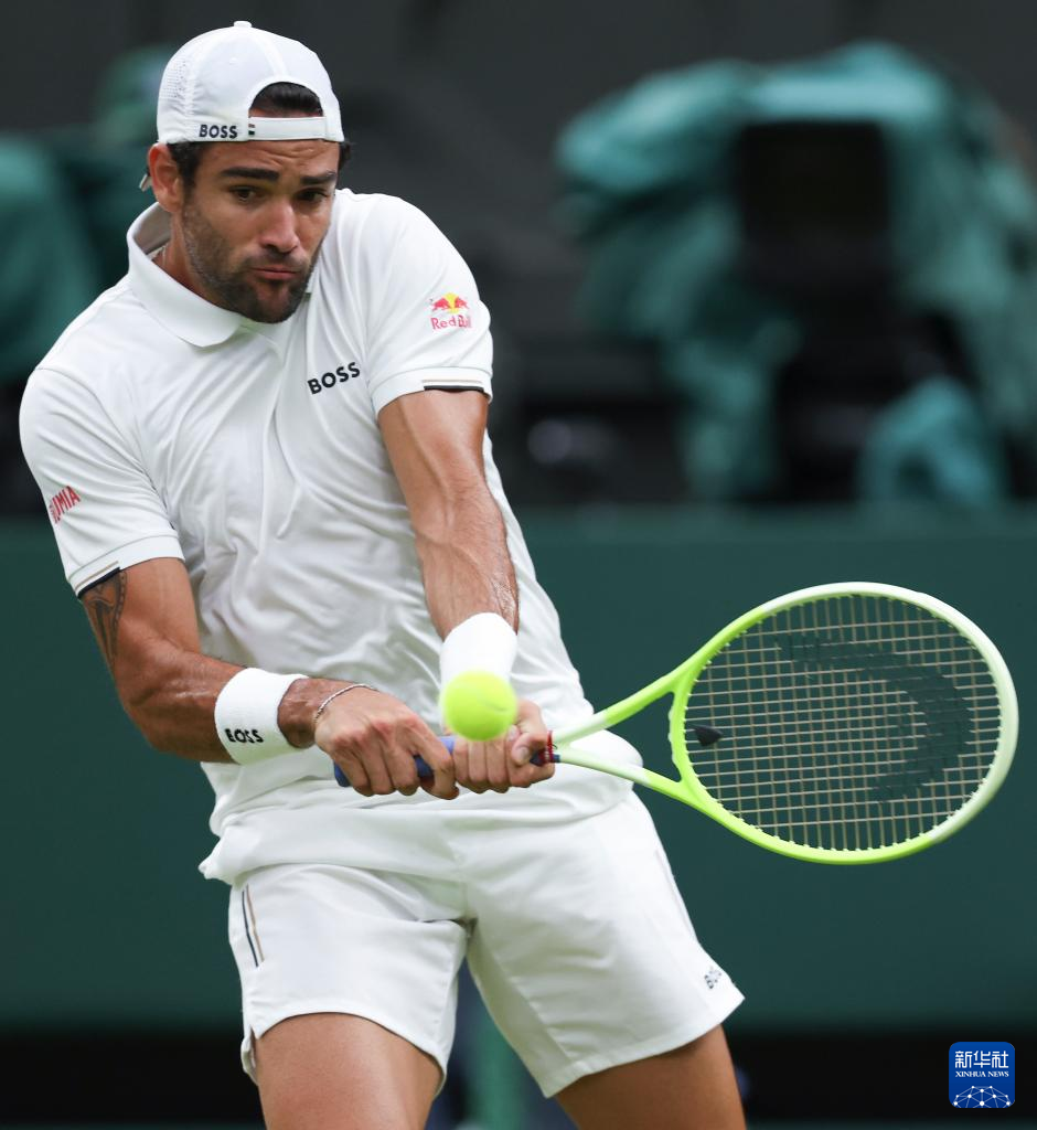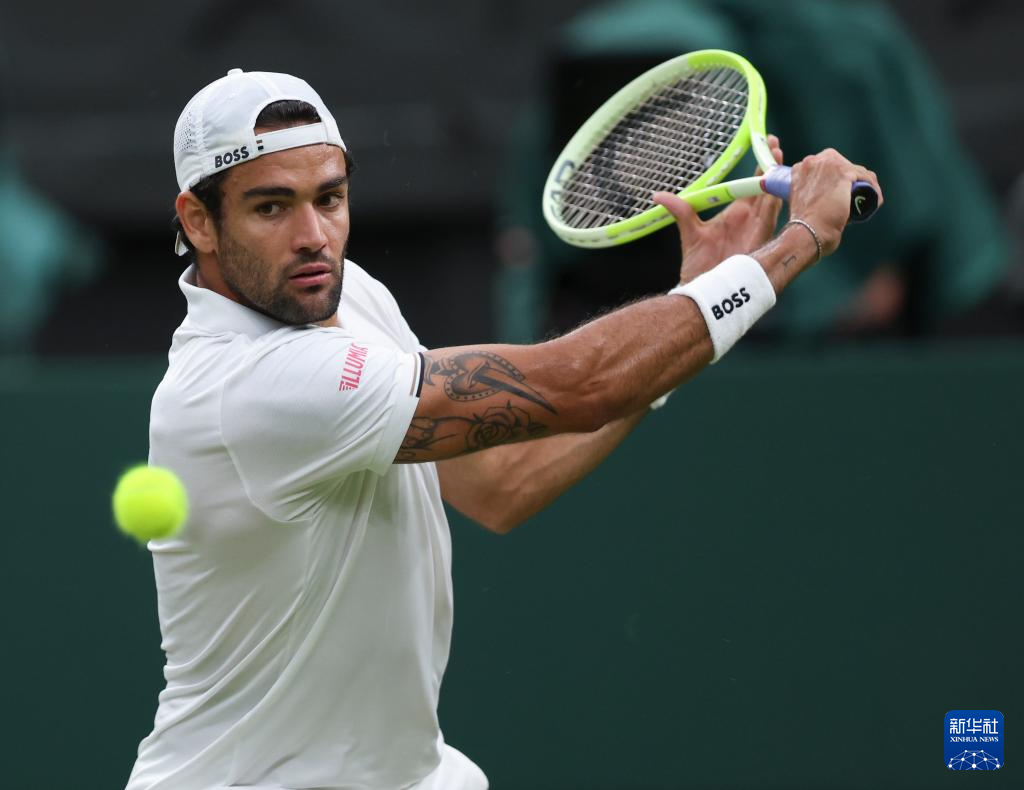 7月3日,贝雷蒂尼在比赛中回球。新华社记者 韩岩 摄