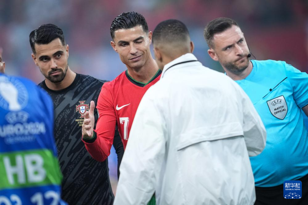 7月5日,葡萄牙队球员克·罗纳尔多(右)在比赛中。新华社记者 潘昱龙 摄