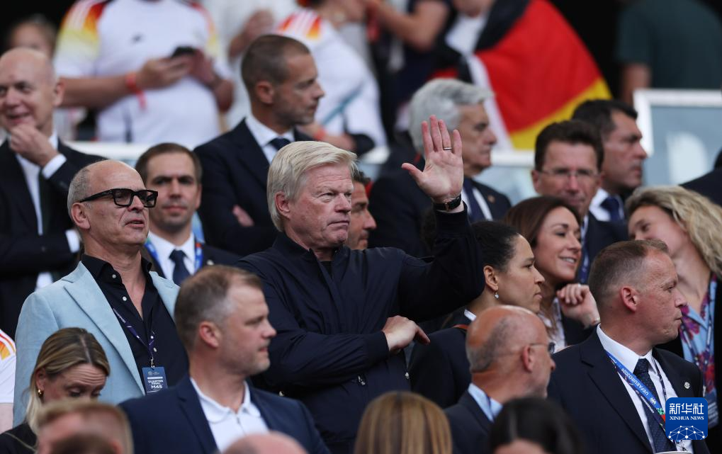 7月5日,德国足坛名宿卡恩(中)在看台观赛。新华社记者 白雪飞 摄
