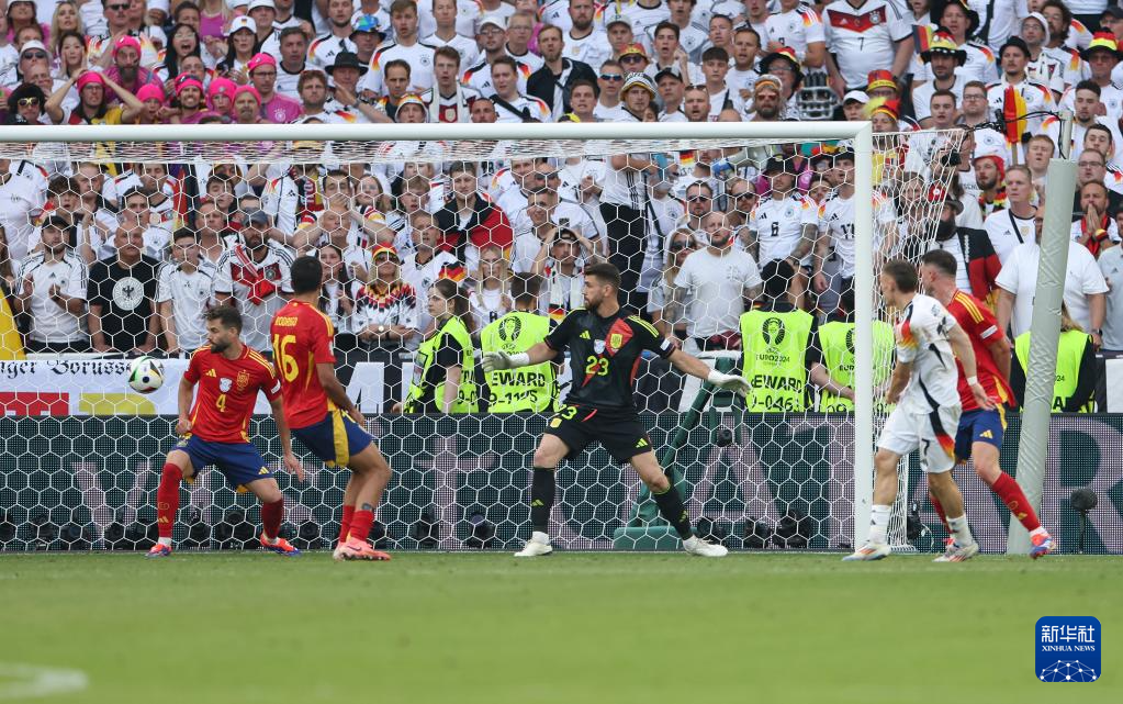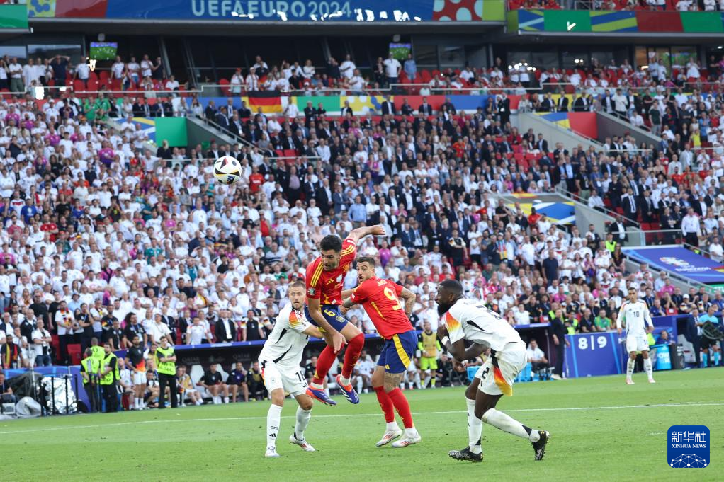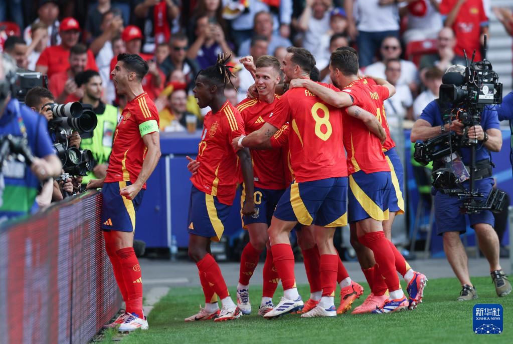 当日,在德国斯图加特进行的2024欧洲足球锦标赛四分之一决赛中,西班牙队2比1战胜德国队,晋级四强。