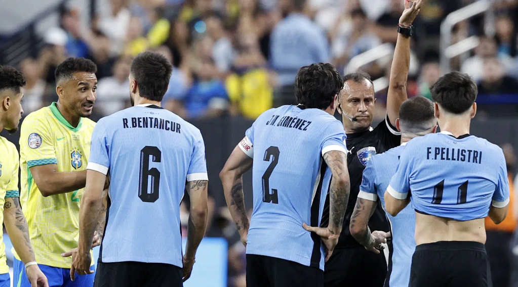 第74分钟,乌拉圭队的南德斯因在禁区前踢到巴西队前锋罗德里戈的脚踝而被红牌罚出场外。尽管人数占优的巴西队开始掌控场上的主动权,但依然无法将优势转为胜势,最终双方比分定格在0:0。