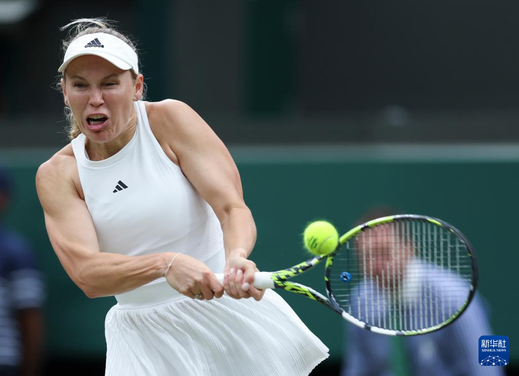 7月6日,沃兹尼亚奇在比赛中回球。新华社记者 韩岩 摄