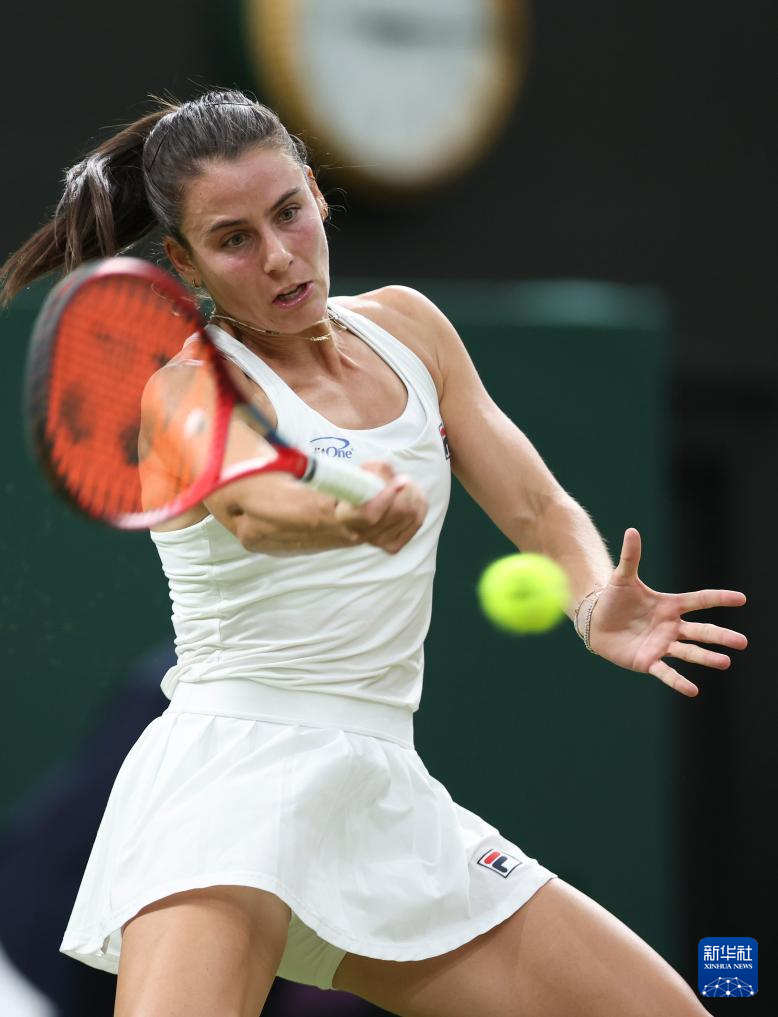 7月7日,高芙在比赛中回球。新华社记者 韩岩 摄
