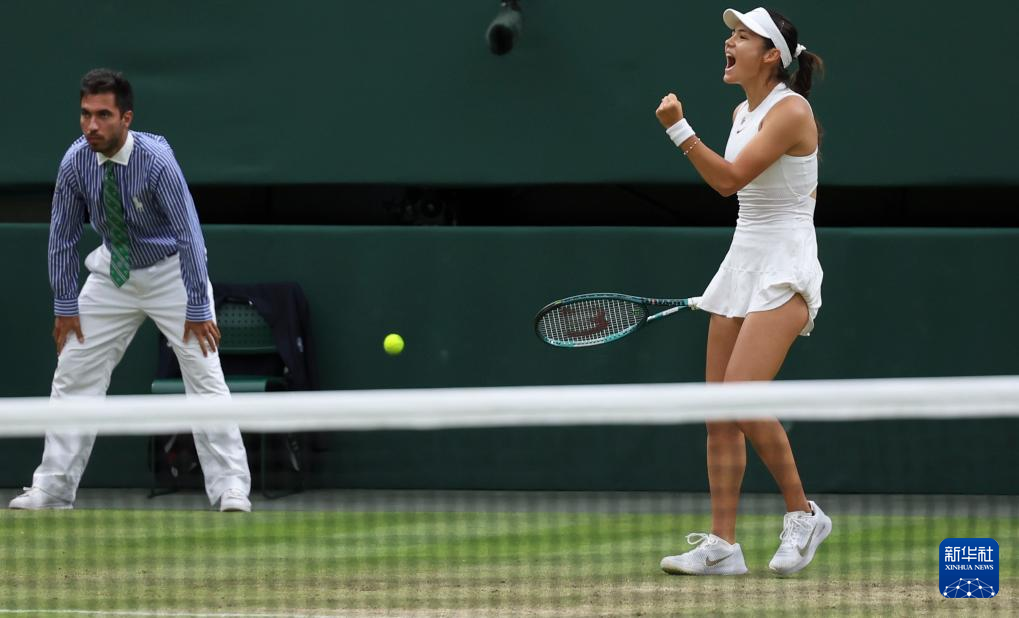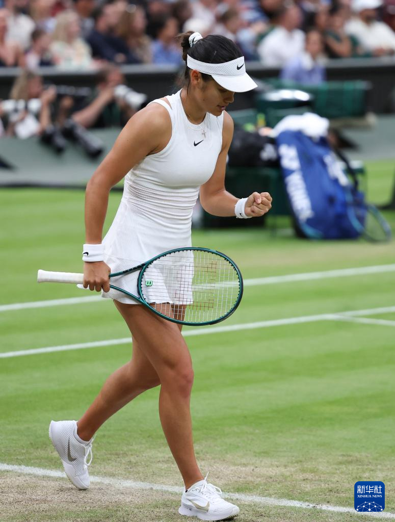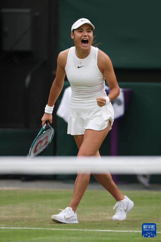 7月7日,拉杜卡努在比赛中庆祝得分。新华社记者 韩岩 摄