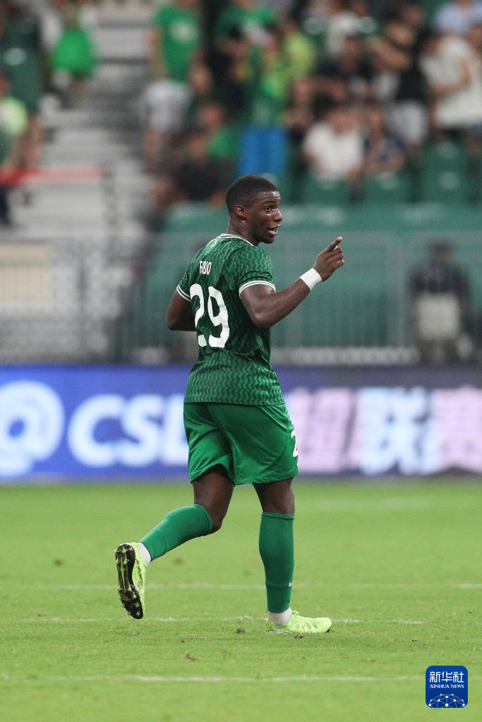 7月7日,北京国安队球员法比奥进球后。新华社记者 许雅楠 摄