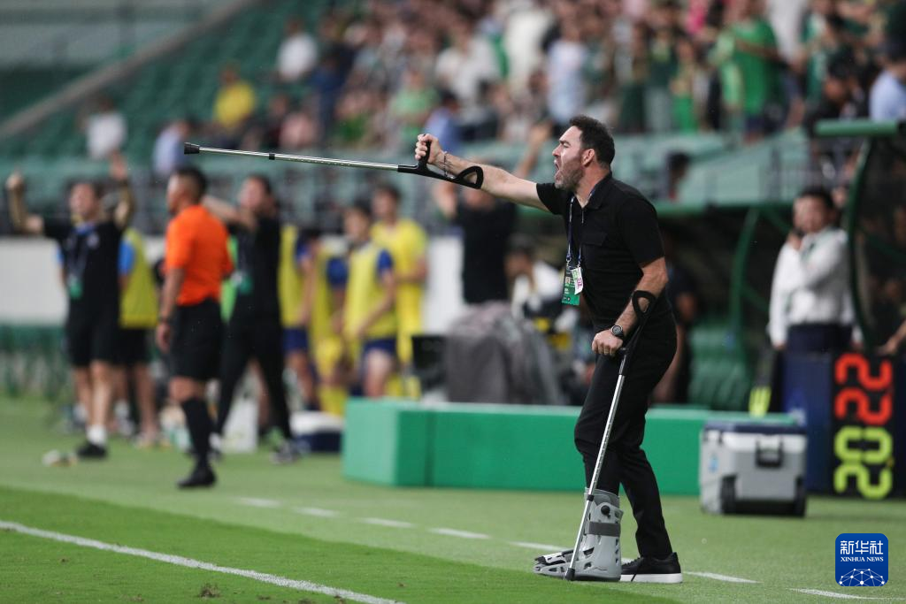 7月7日,北京国安队主教练里卡多·苏亚雷斯在比赛中指挥。新华社记者 许雅楠 摄