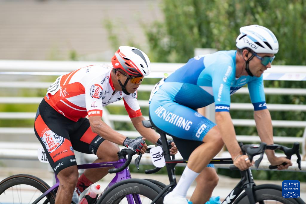 7月7日,青海天佑德车队车手王建财(左)在比赛中骑行。新华社发(潘彬彬摄)