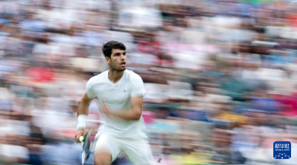 7月7日,阿尔卡拉斯在比赛中。新华社记者 韩岩 摄