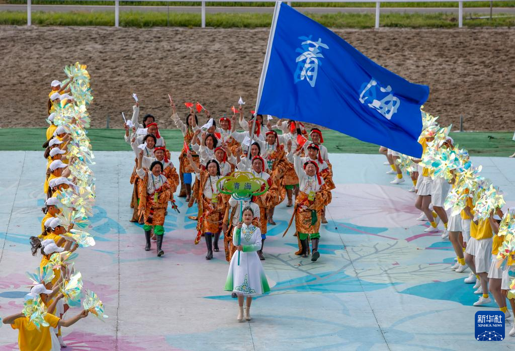 7月8日,青海省代表团在开赛仪式上入场。新华社记者 陈朔 摄