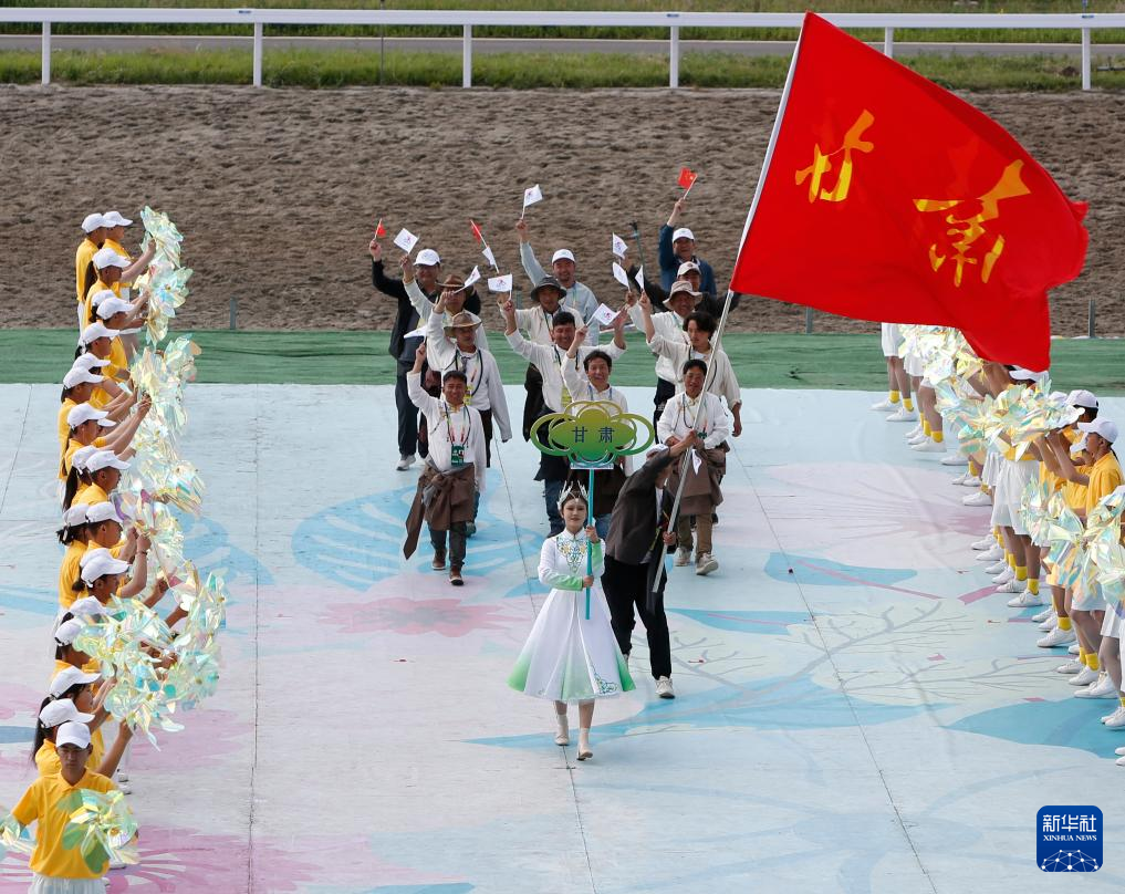 7月8日,甘肃省代表团在开赛仪式上入场。新华社记者 陈朔 摄