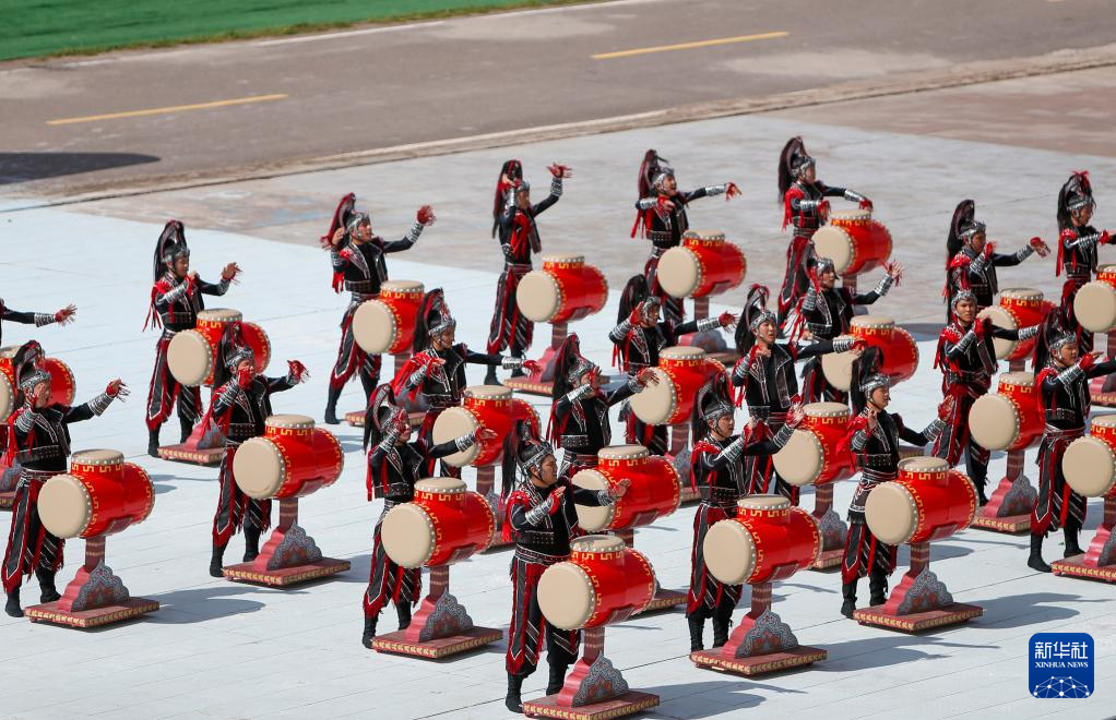 7月8日,这是开赛仪式上的“万马奔腾”表演。新华社记者 陈朔 摄