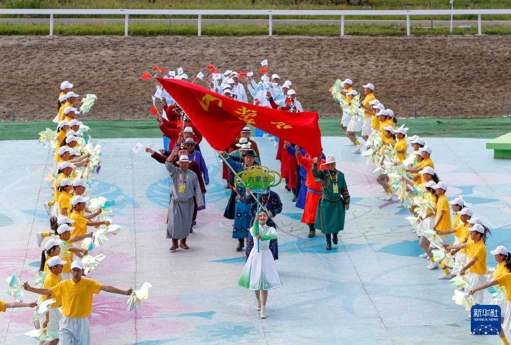 7月8日,内蒙古自治区代表团在开赛仪式上入场。新华社记者 陈朔 摄