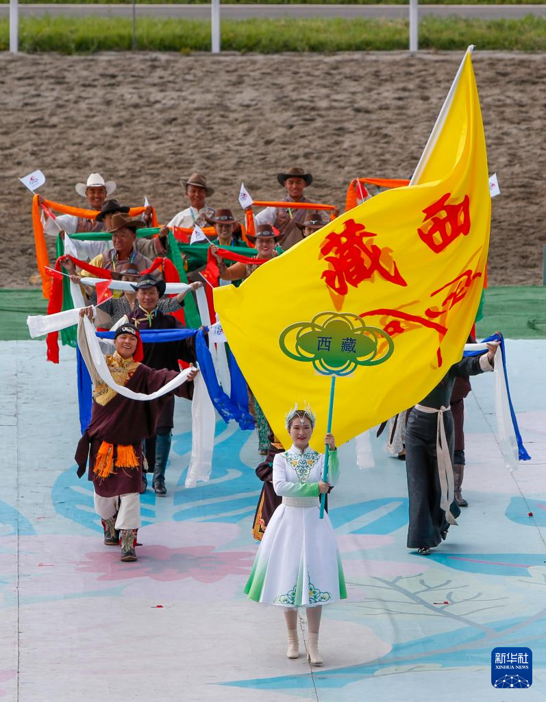 7月8日,西藏自治区代表团在开赛仪式上入场。新华社记者 陈朔 摄
