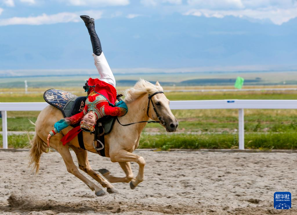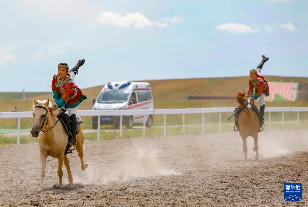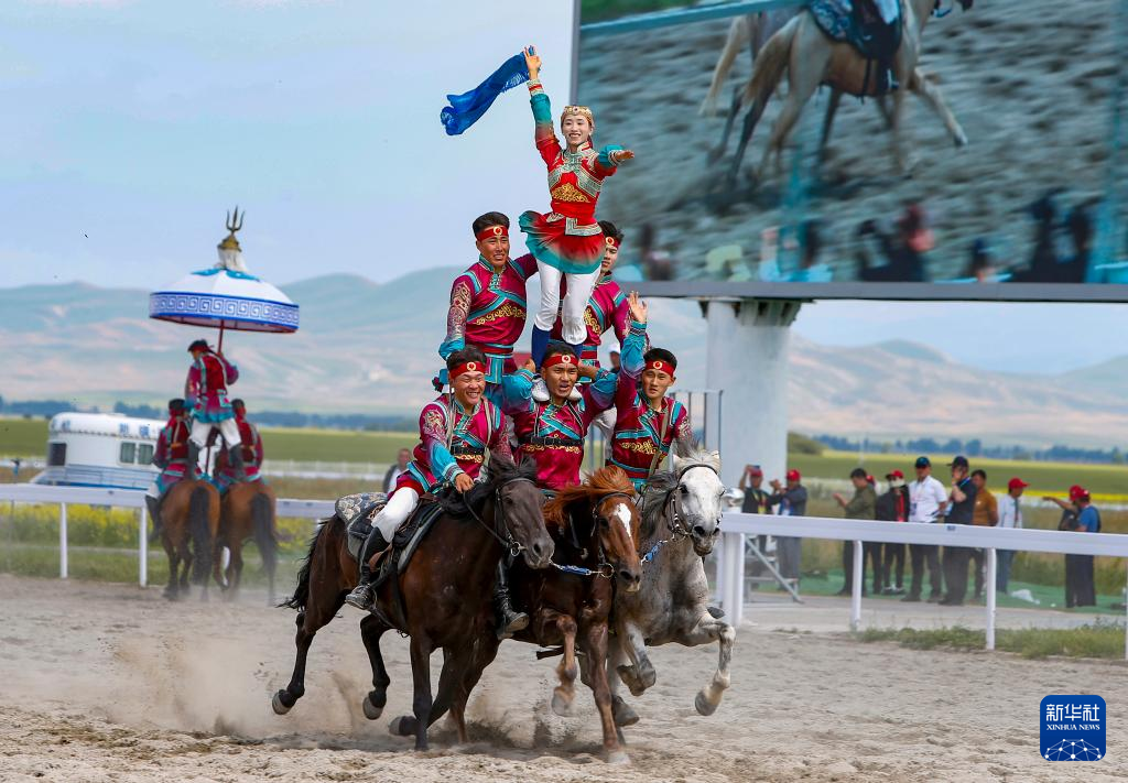 7月8日,内蒙古代表团运动员参加表演项目技巧类马上技巧比赛。新华社记者 陈朔 摄