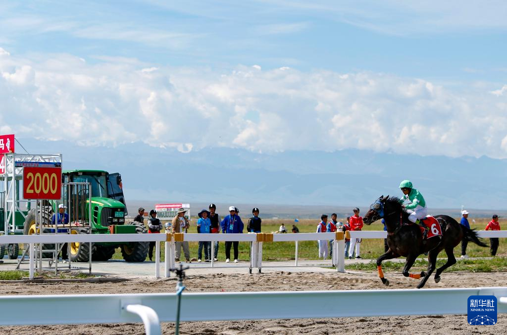 7月8日,西藏代表队运动员扎西平措和赛马“和力雄鹰”在民族赛马2000米比赛中。最终他们以2分24秒68的成绩夺冠。新华社记者 陈朔 摄