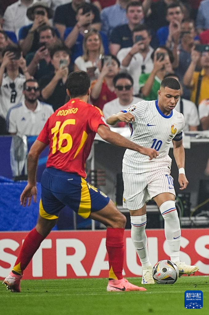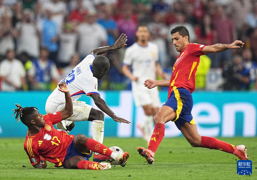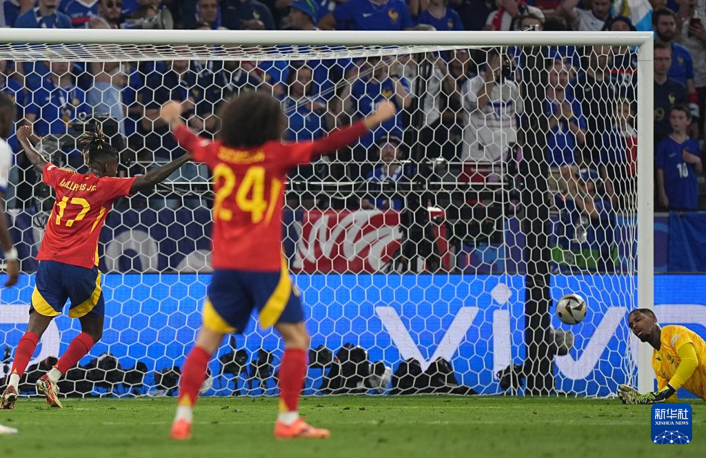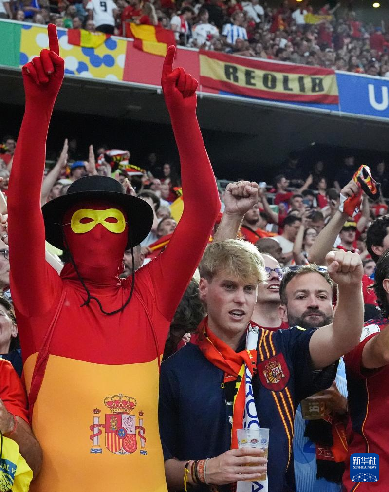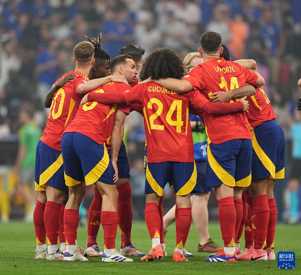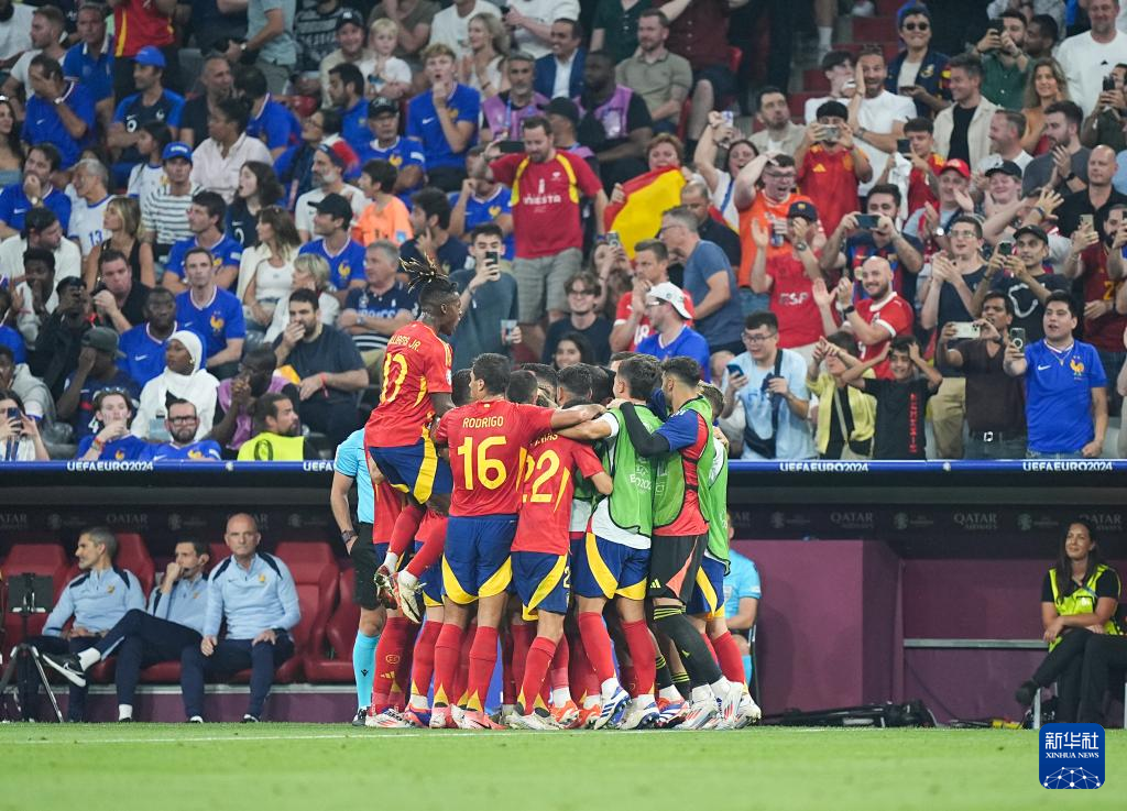 当日,在德国慕尼黑进行的2024欧洲足球锦标赛半决赛中,西班牙队2比1战胜法国队,晋级决赛。