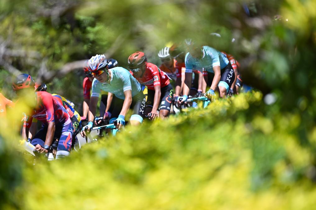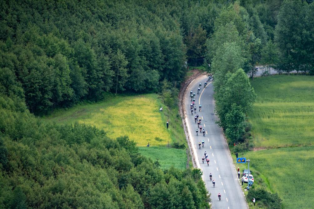 7月9日,参赛车手在比赛中骑行。新华社发(潘彬彬摄)