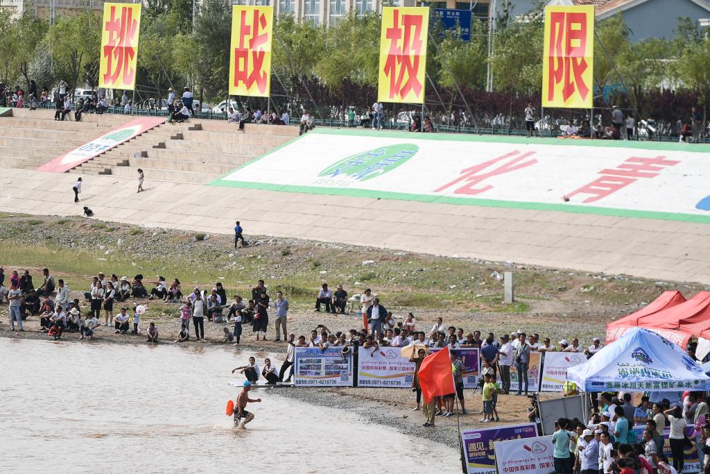 2017年8月5日,第13届“化青杯”中国·青海国际抢渡黄河极限挑战赛预赛在青海省海东市循化撒拉族自治县举行。新华社记者吴刚摄