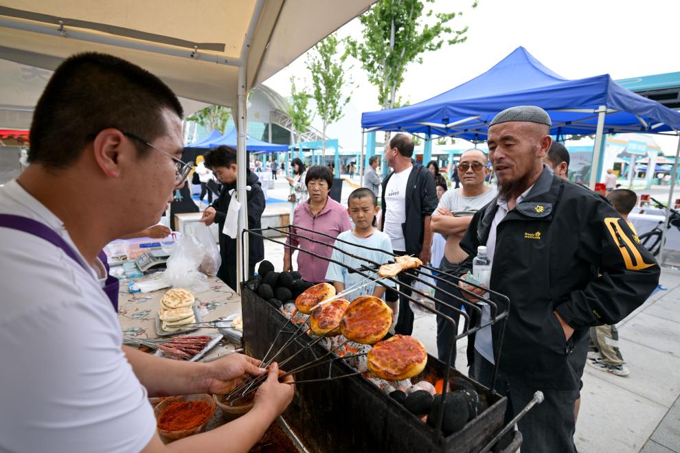 场馆外,特色农产品以及非遗文创展位,吸引不少人驻足。固原市的砖雕、根雕、刺绣、泥塑等非遗文创产品,彰显着丝路古城的深厚文化底蕴,以及当地百姓丰富的精神文化生活。包装精致的碗蒸羊羔肉、沙棘原浆、深加工土豆粉等产品,则折射了当地名优特新农产品蓬勃发展的态势。