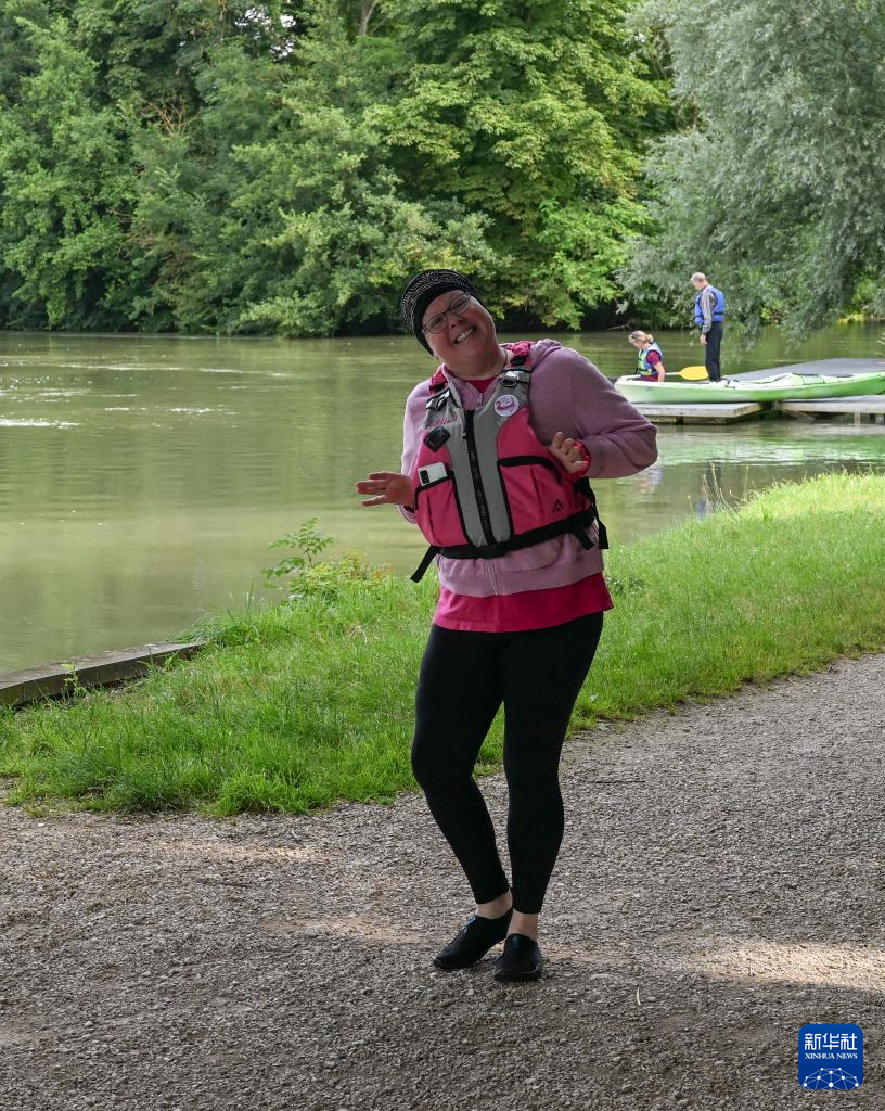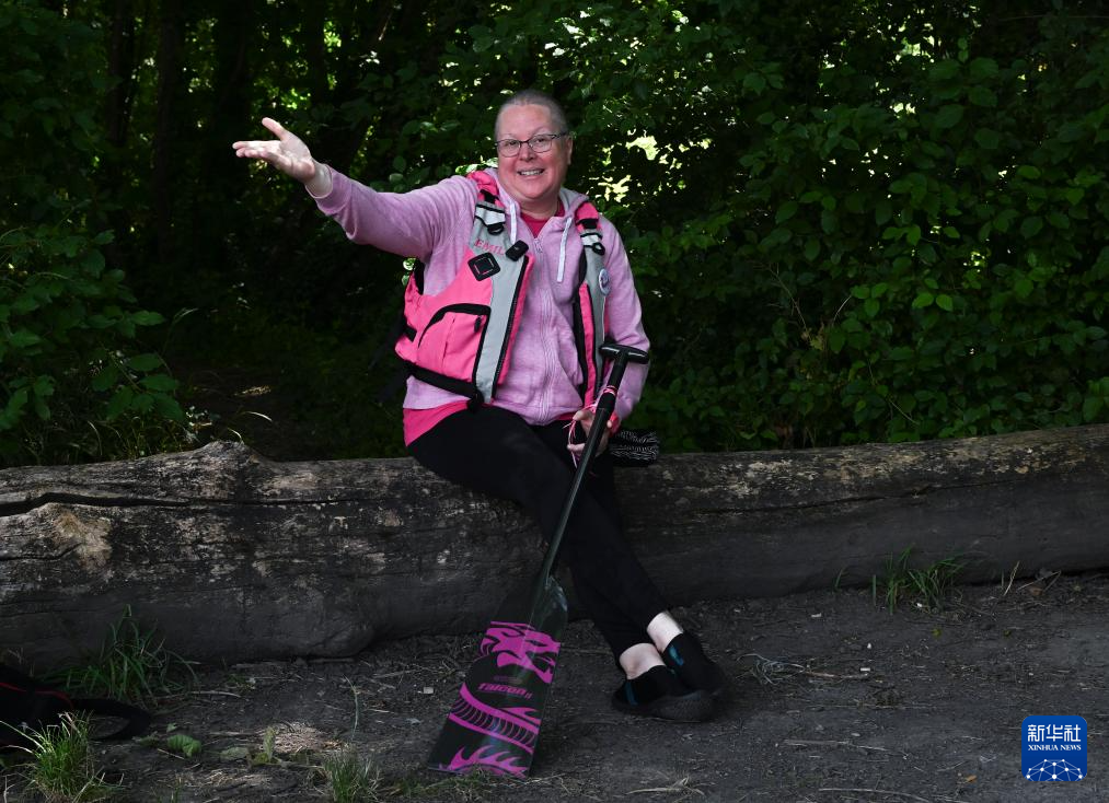 这是7月7日,艾米莉在“冠军龙女”龙舟队训练后。新华社记者 贺长山 摄
