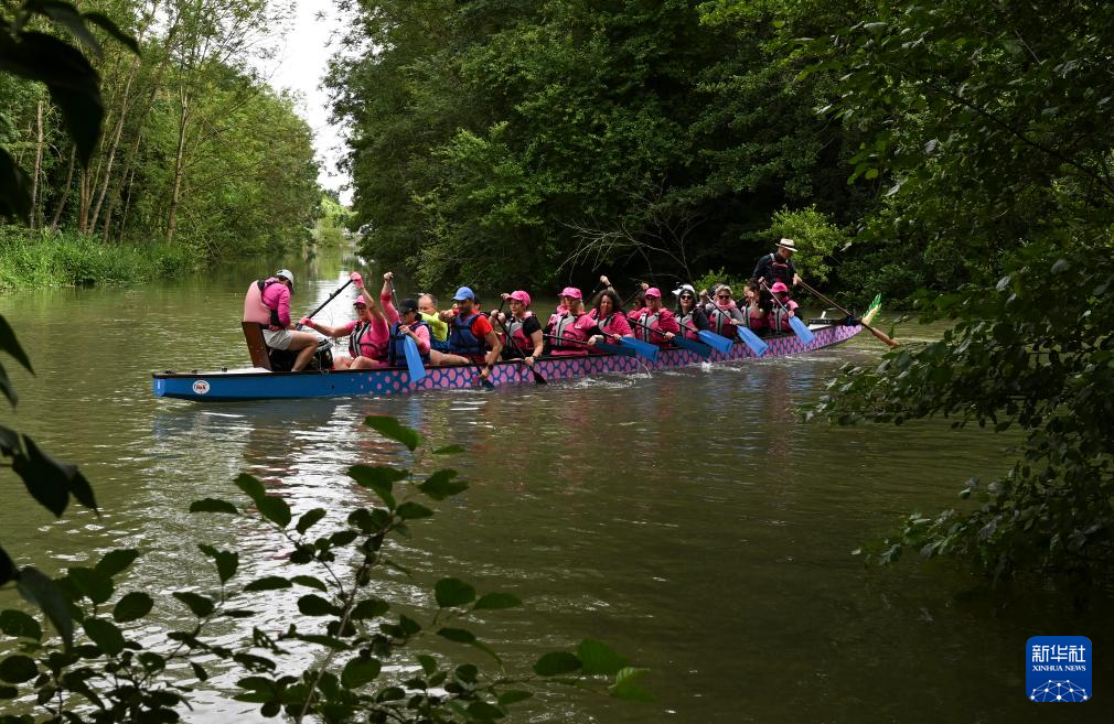 塞这是7月7日,“冠军龙女”龙舟队在马恩河上训练。新华社记者 贺长山 摄