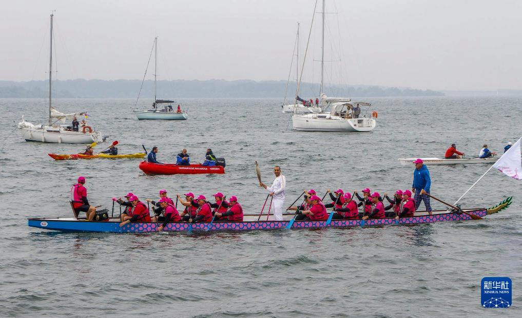 这是6月30日,“冠军龙女”龙舟队在巴黎奥运会圣火传递中。新华社发(受访者供图)