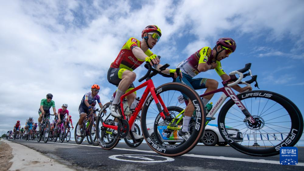 7月11日,中国华兴MENTECH车队车手李桢在比赛中骑行。新华社发(潘彬彬摄)