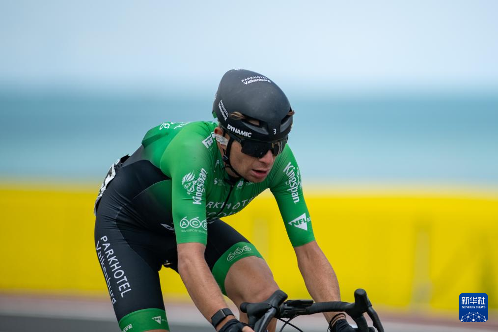 7月11日,比利时塔特雷托-艾索雷斯车队车手阿恩·桑蒂在比赛中骑行。新华社发(潘彬彬摄)