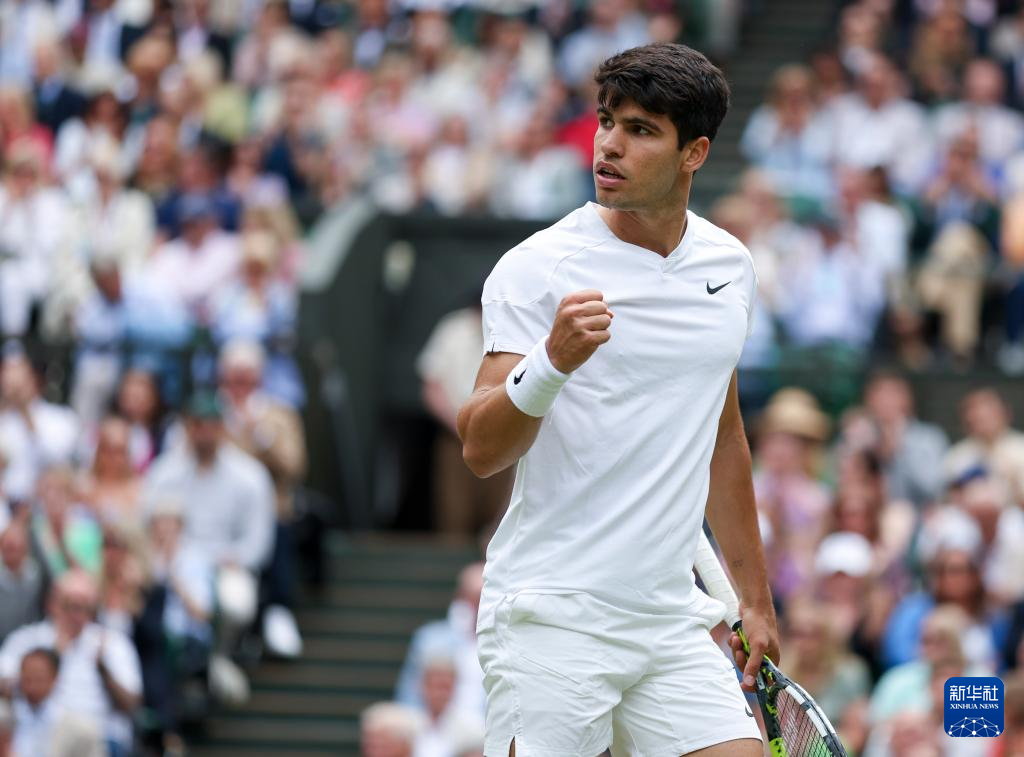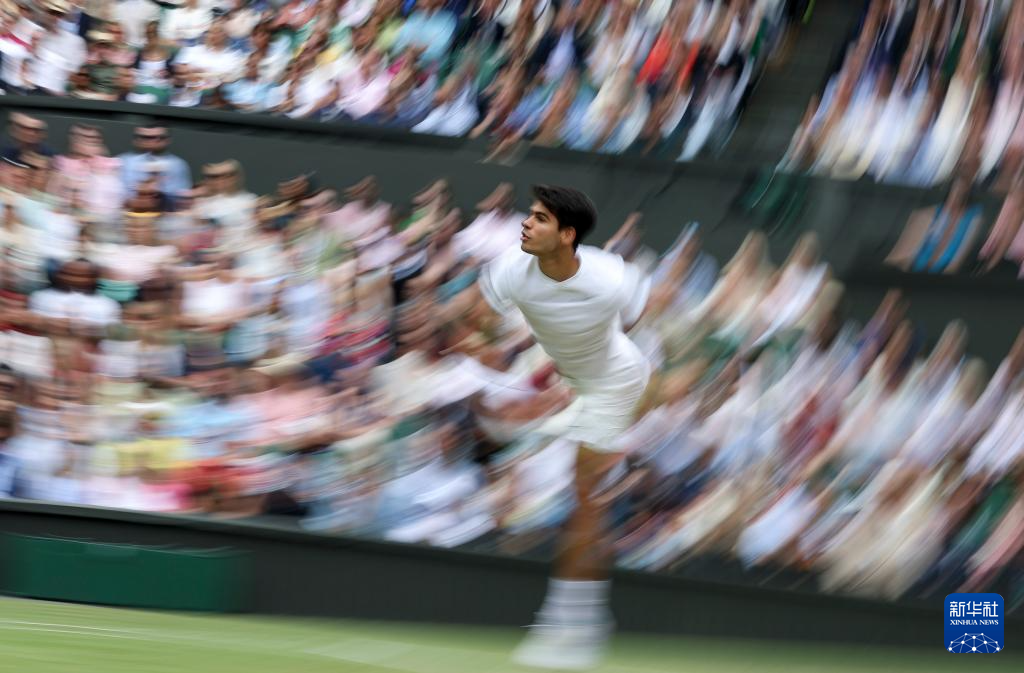 7月12日,阿尔卡拉斯在比赛中。新华社记者 韩岩 摄