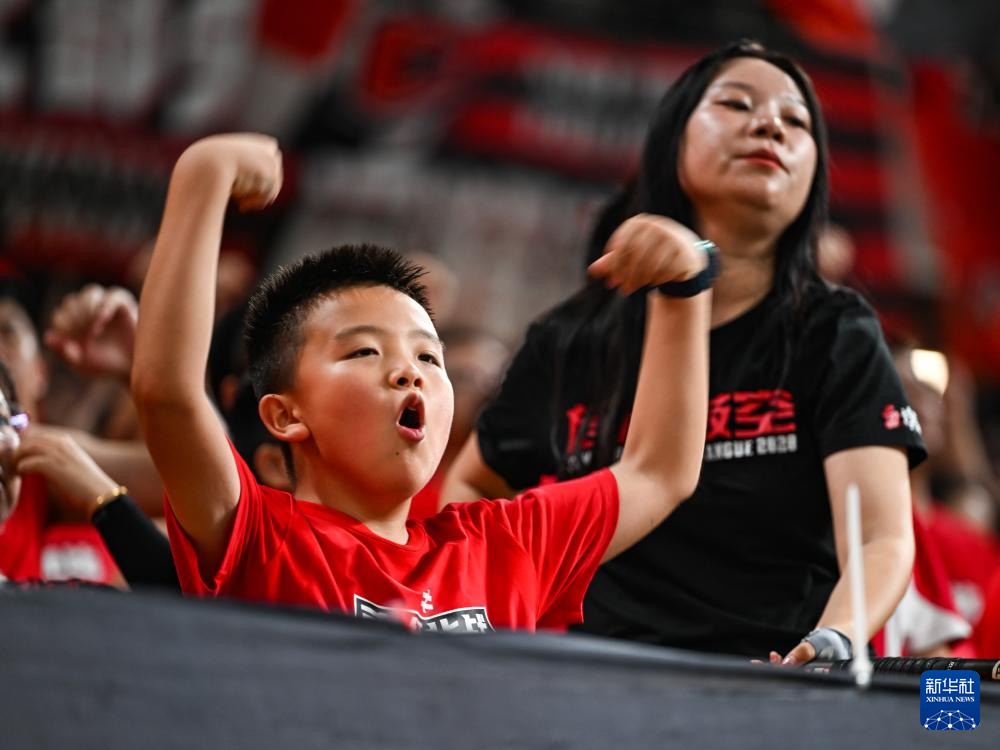 7月12日,小球迷在场边为成都蓉城队加油助威。新华社记者 王曦 摄